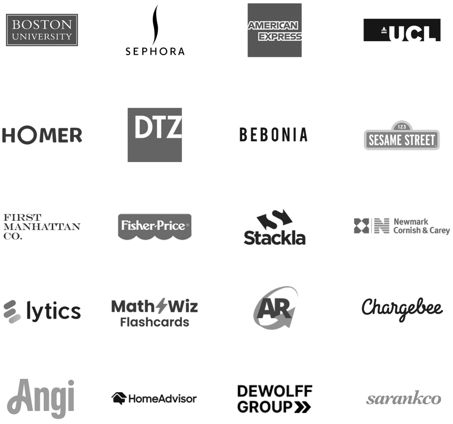 I’ve worked with tech startups, agencies, and corporate businesses of all sizes in major markets like NYC, San Francisco, Boston, London, and Sydney.